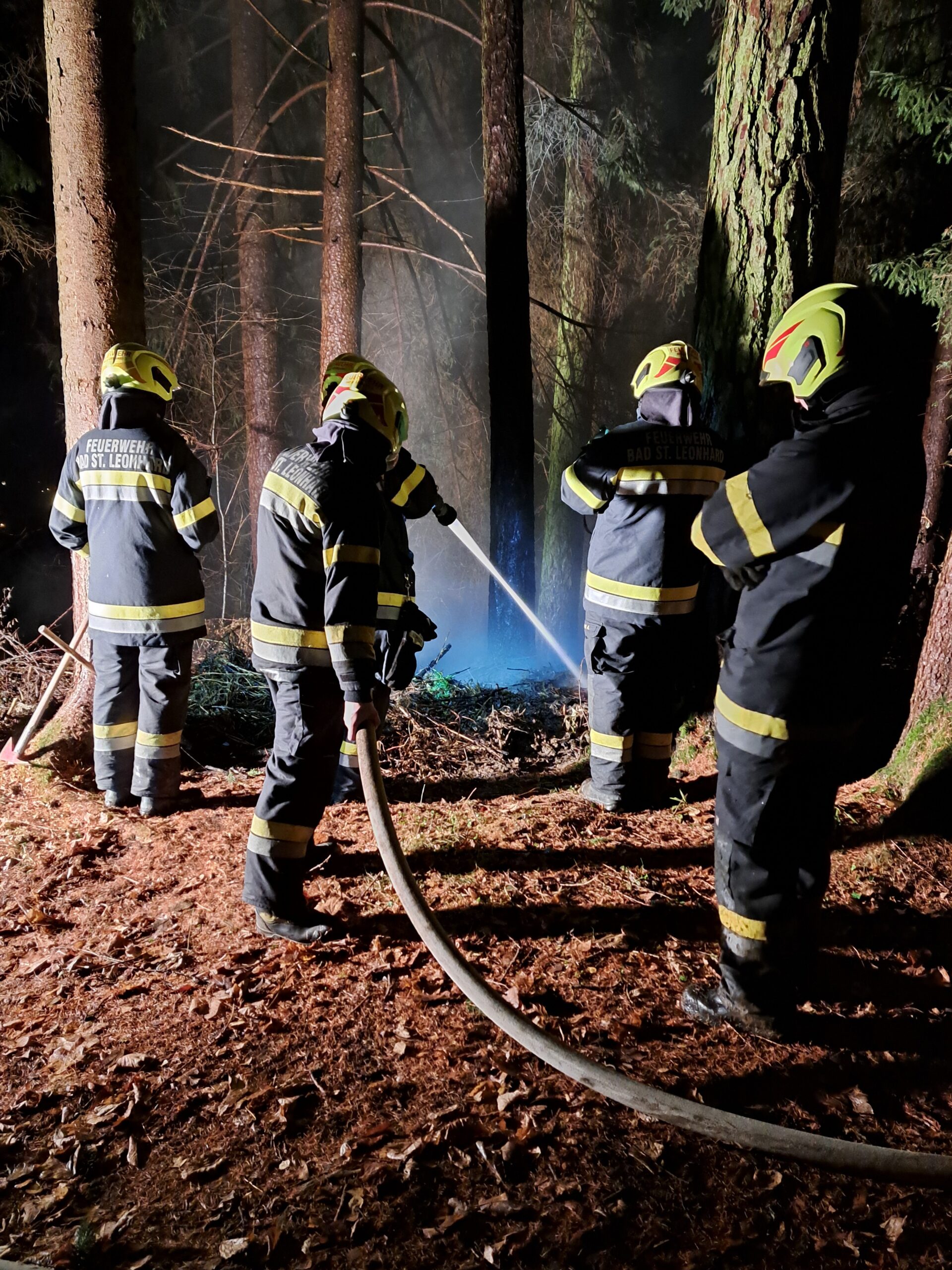 Einsatzbericht: An einem Forstweg im Wald stand eine kleine Fläche in Flammen. Die Flammen und der Funkenflug breiteten sich deutlich sichtbar zwischen den Bäumen aus. Dank des raschen Einsatzes konnte der Brand schnell unter Kontrolle gebracht und gelöscht werden, bevor er sich weiter ausbreiten konnte.